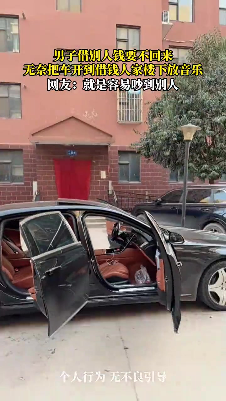 男子借别人钱要不回来,无奈把车开到借钱人家楼下放音乐!