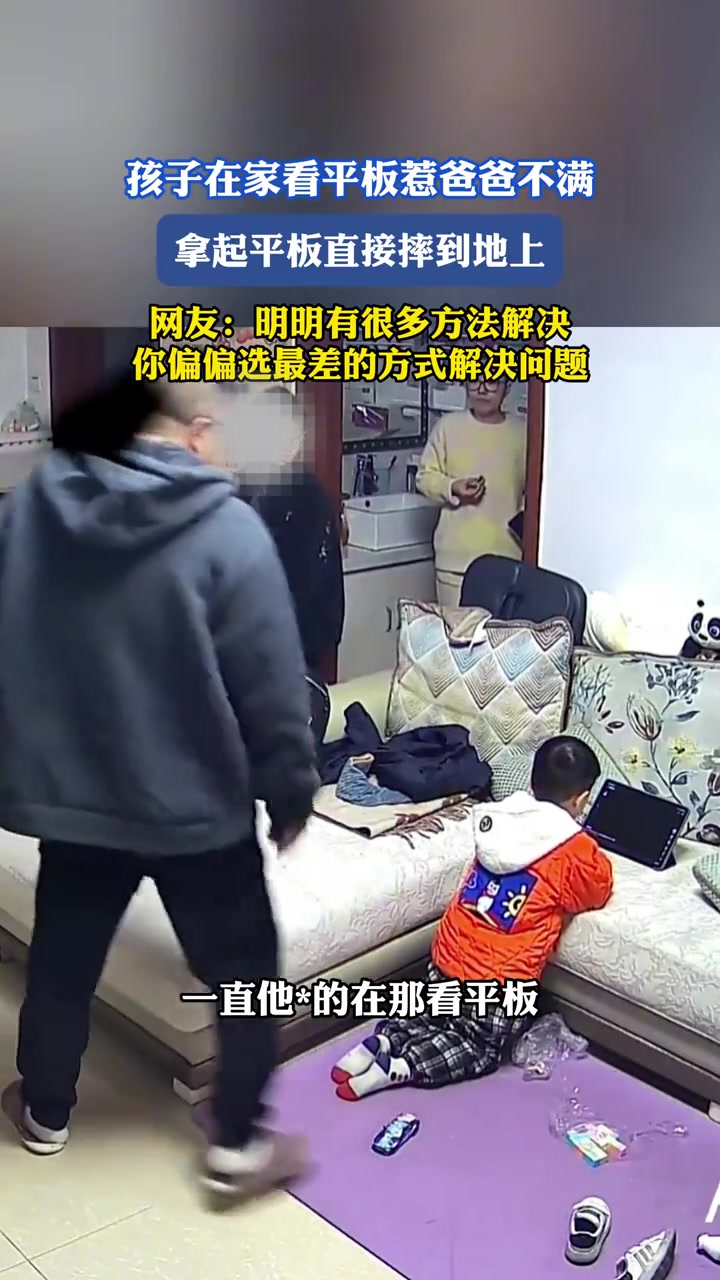>孩子在家看平板惹爸爸不满,拿起平板直接摔到地上!!