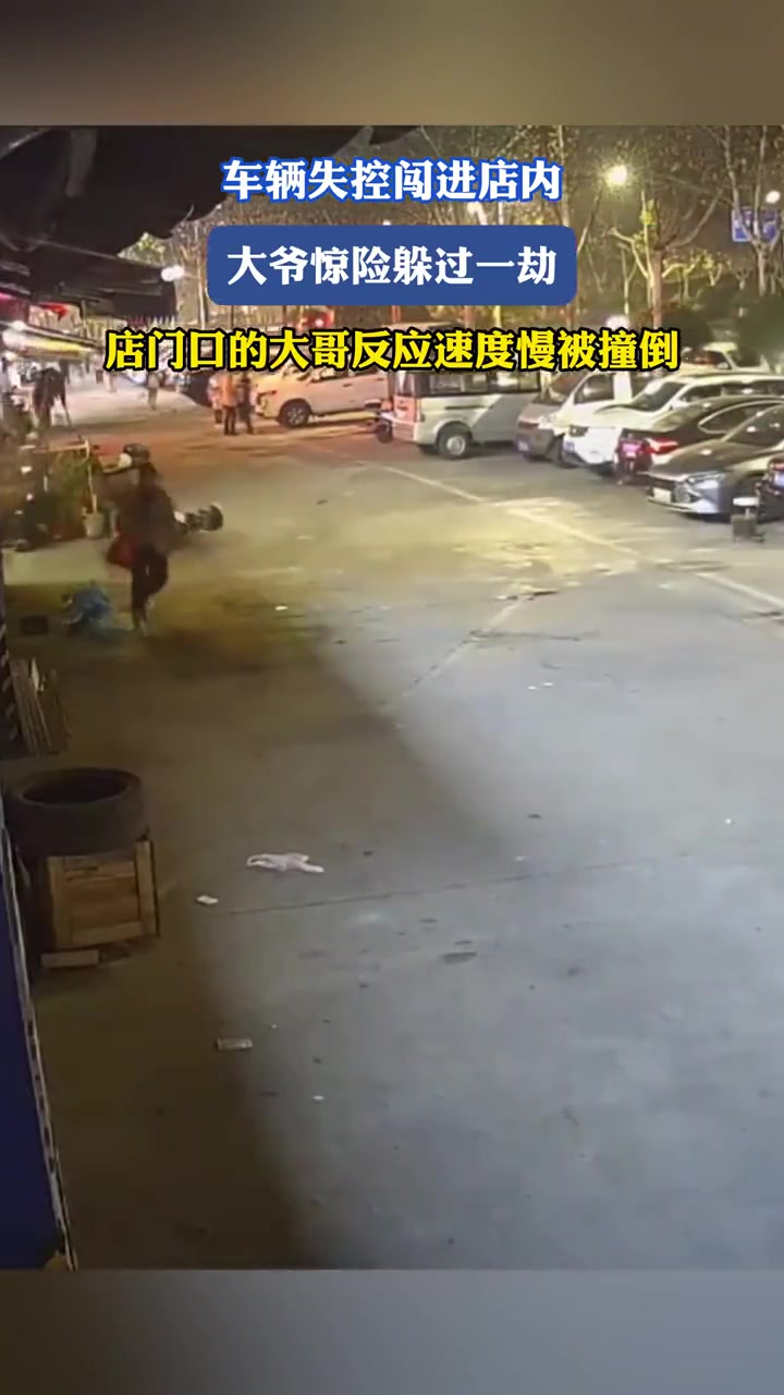 >车辆失控闯进店内,大爷惊险躲过一劫,门口大哥反应速度慢被撞到