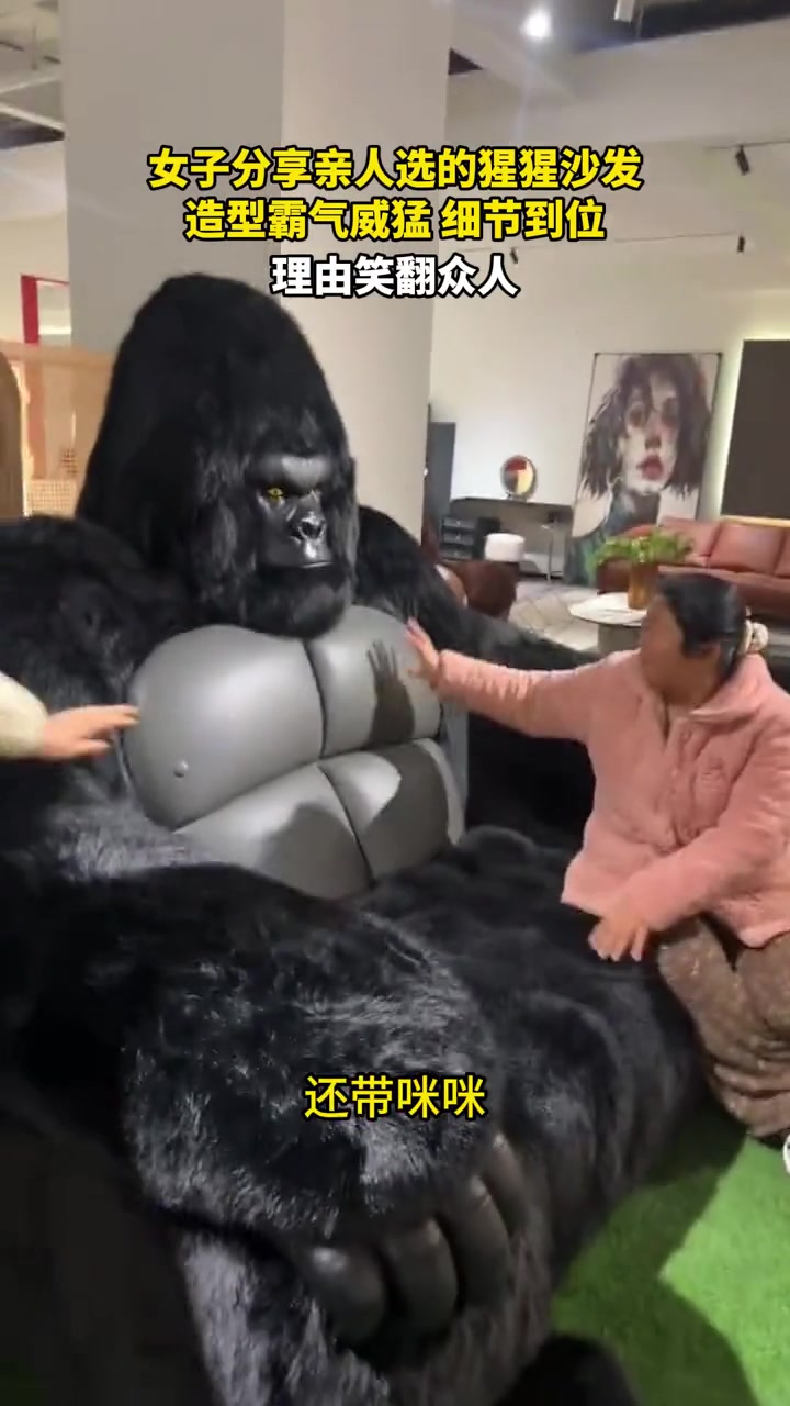 女子分享亲人选的猩猩沙发,造型霸气威猛,细节到位!!