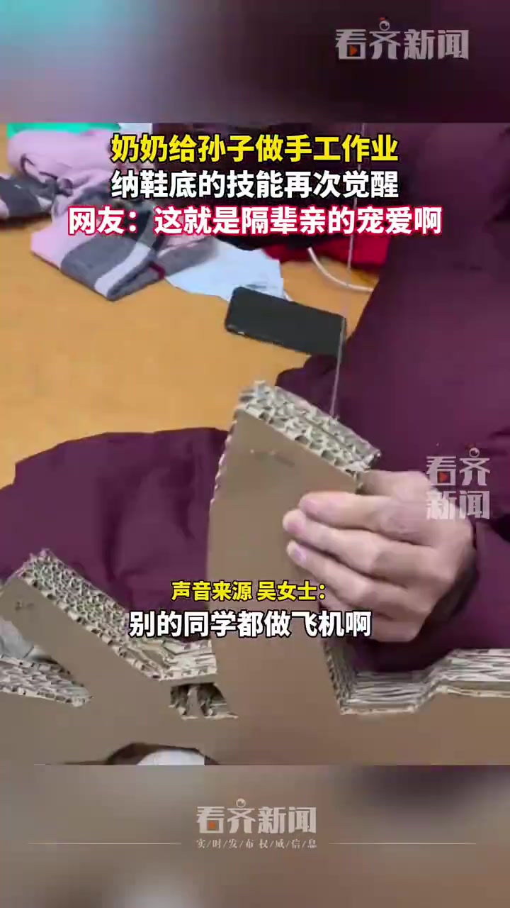 >奶奶给孙子做手工作业,纳鞋底的技能再次觉醒网友:这就是隔辈亲