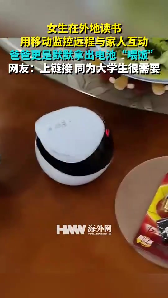 >女生远程监控互动,爸爸拿电池喂饭,笑喷!