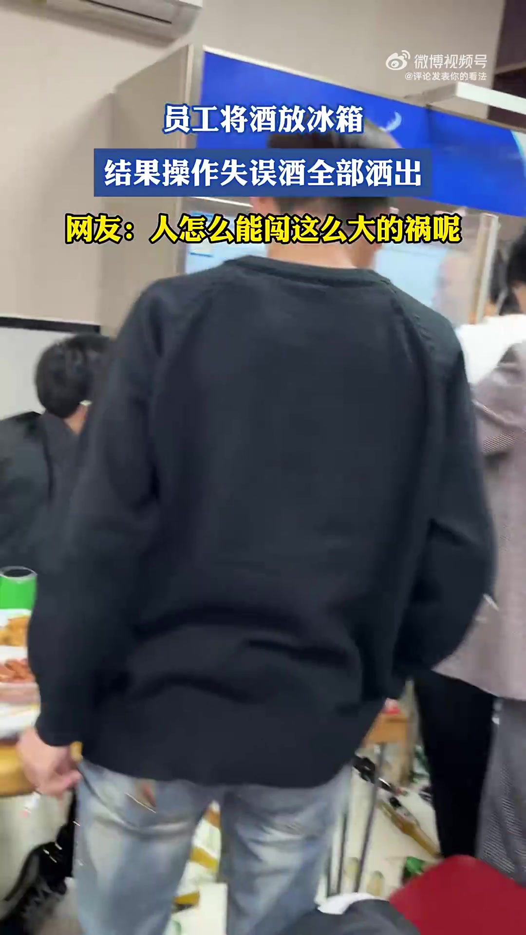 >员工将酒放冰箱冻,结果操作失误酒全部洒出