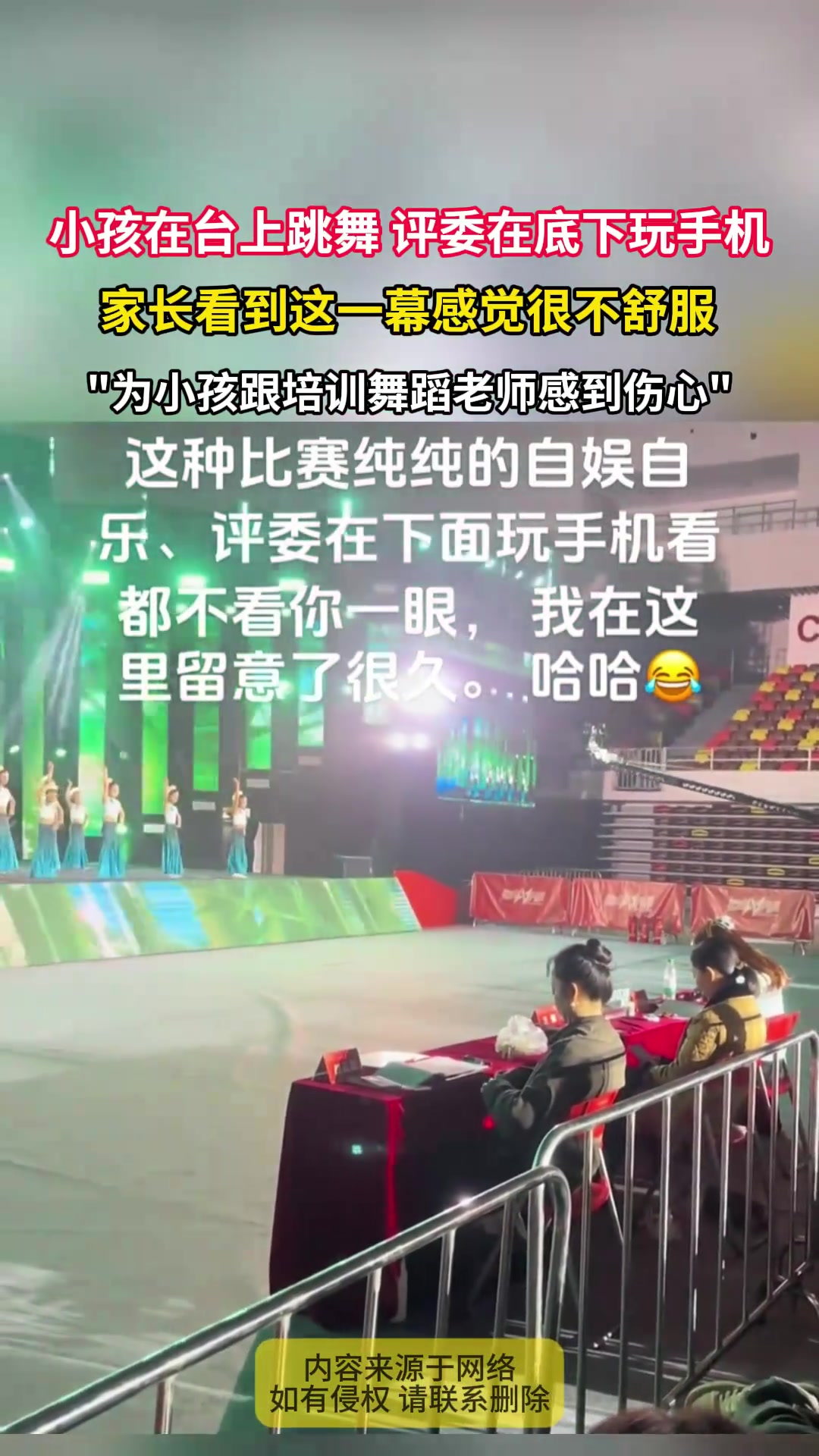 >小孩在台上跳舞 评委在底下玩手机,家长看到这一幕感觉很不舒服