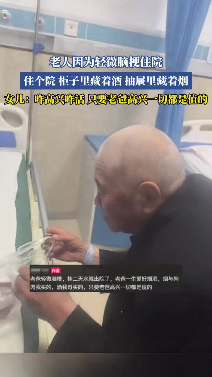>老人因为轻微脑梗住院,住个院 柜子里藏着酒 抽屉里藏着烟!