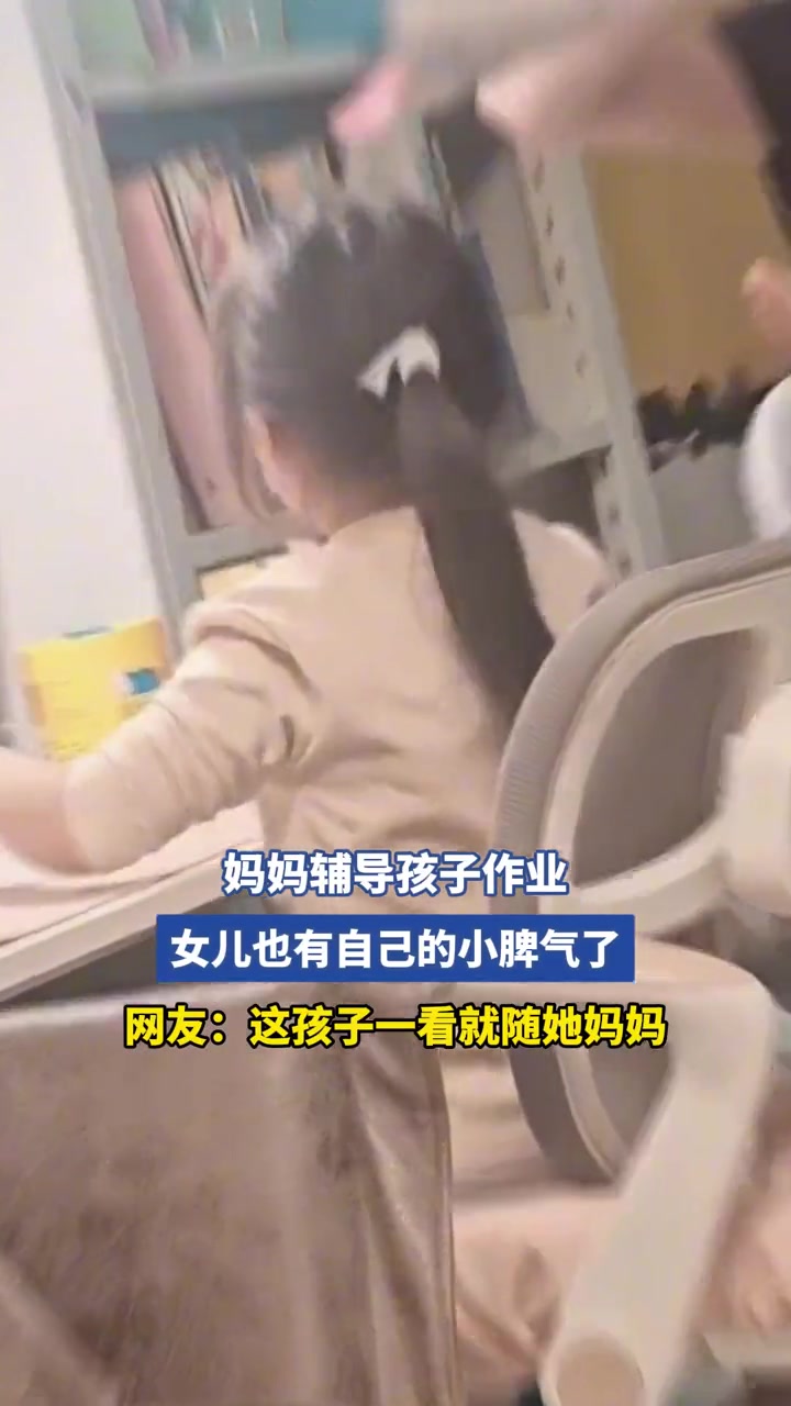 >妈妈辅导孩子作业,女儿也有自己的小脾气了!!