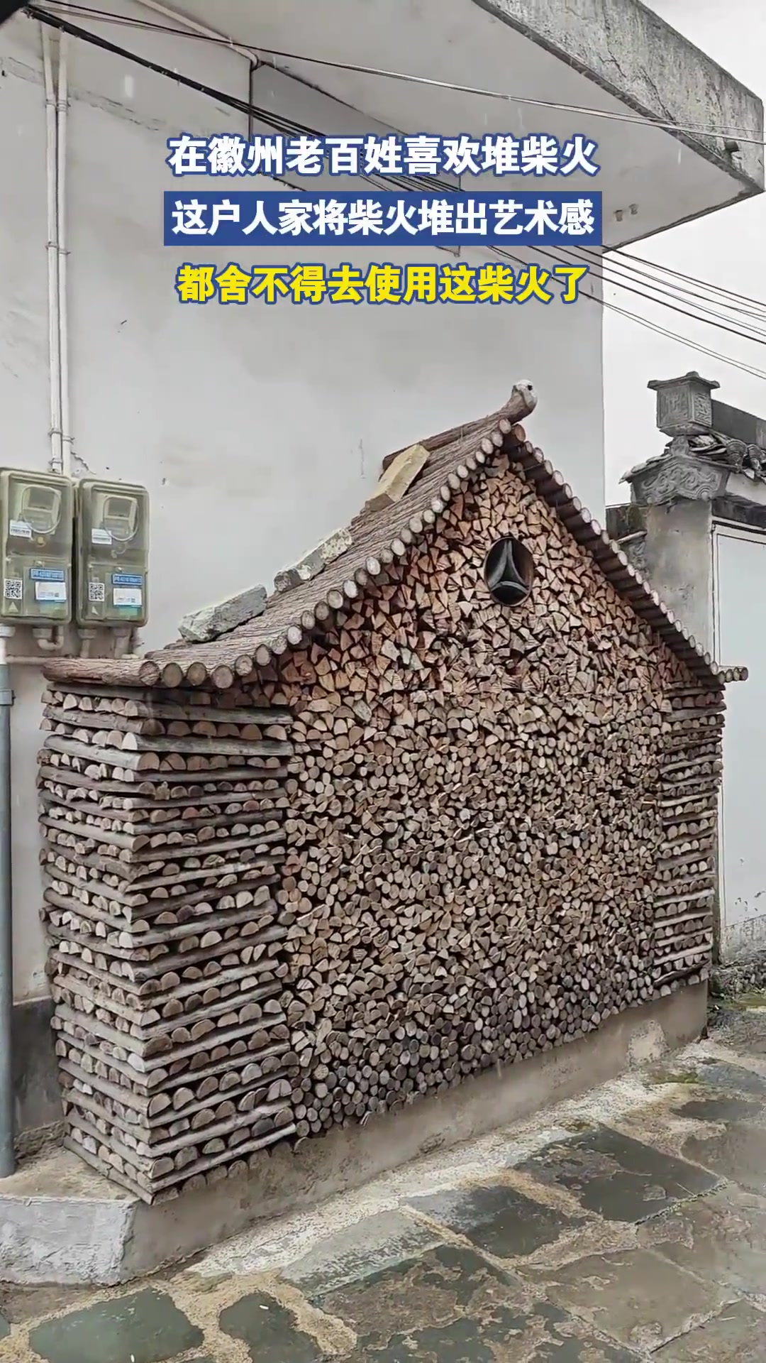 >在徽州老百姓喜欢堆柴火,这户人家将柴火堆出艺术感