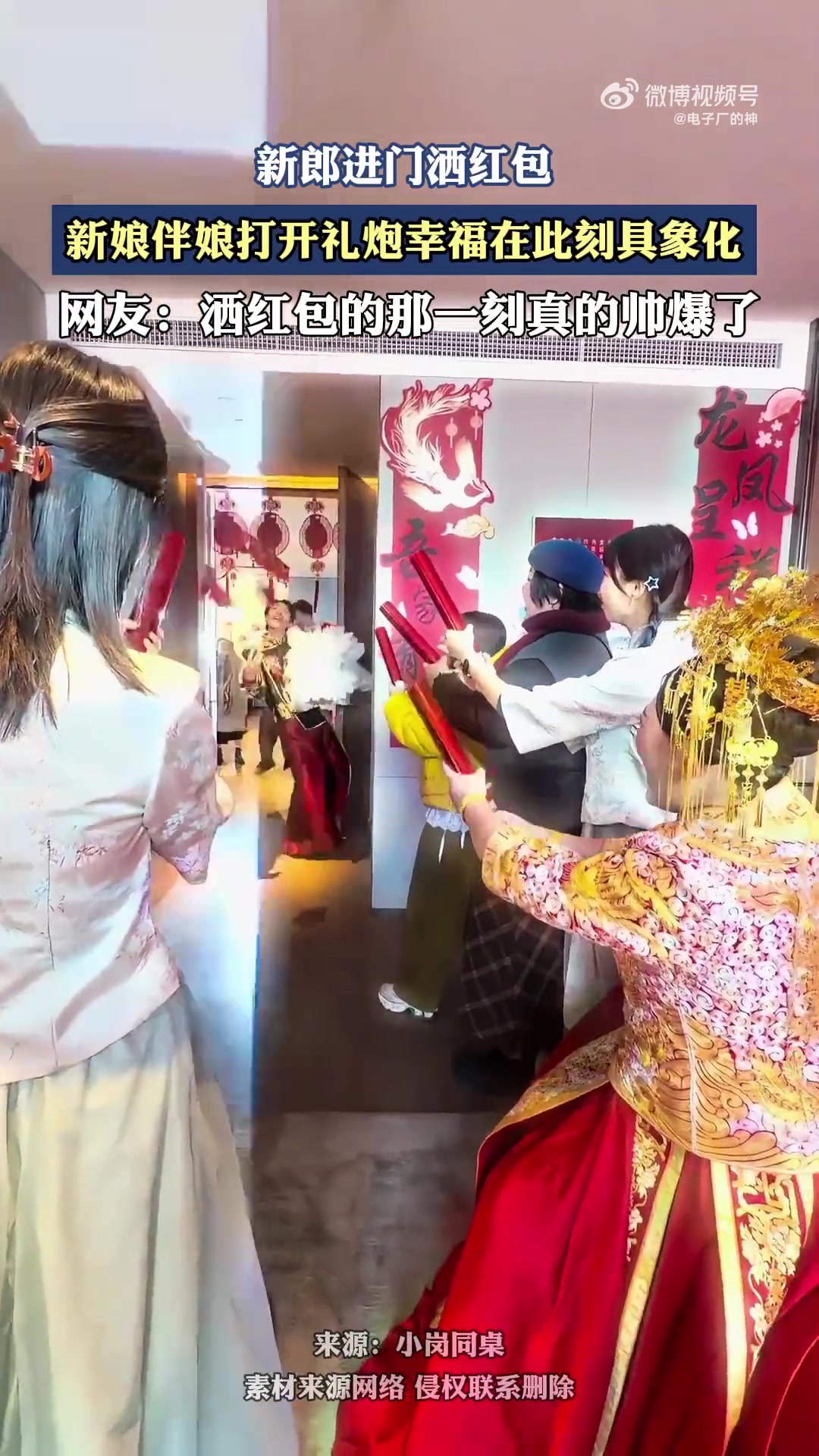 >新郎进门洒红包,新娘伴娘打开礼炮幸福在此刻具象化!
