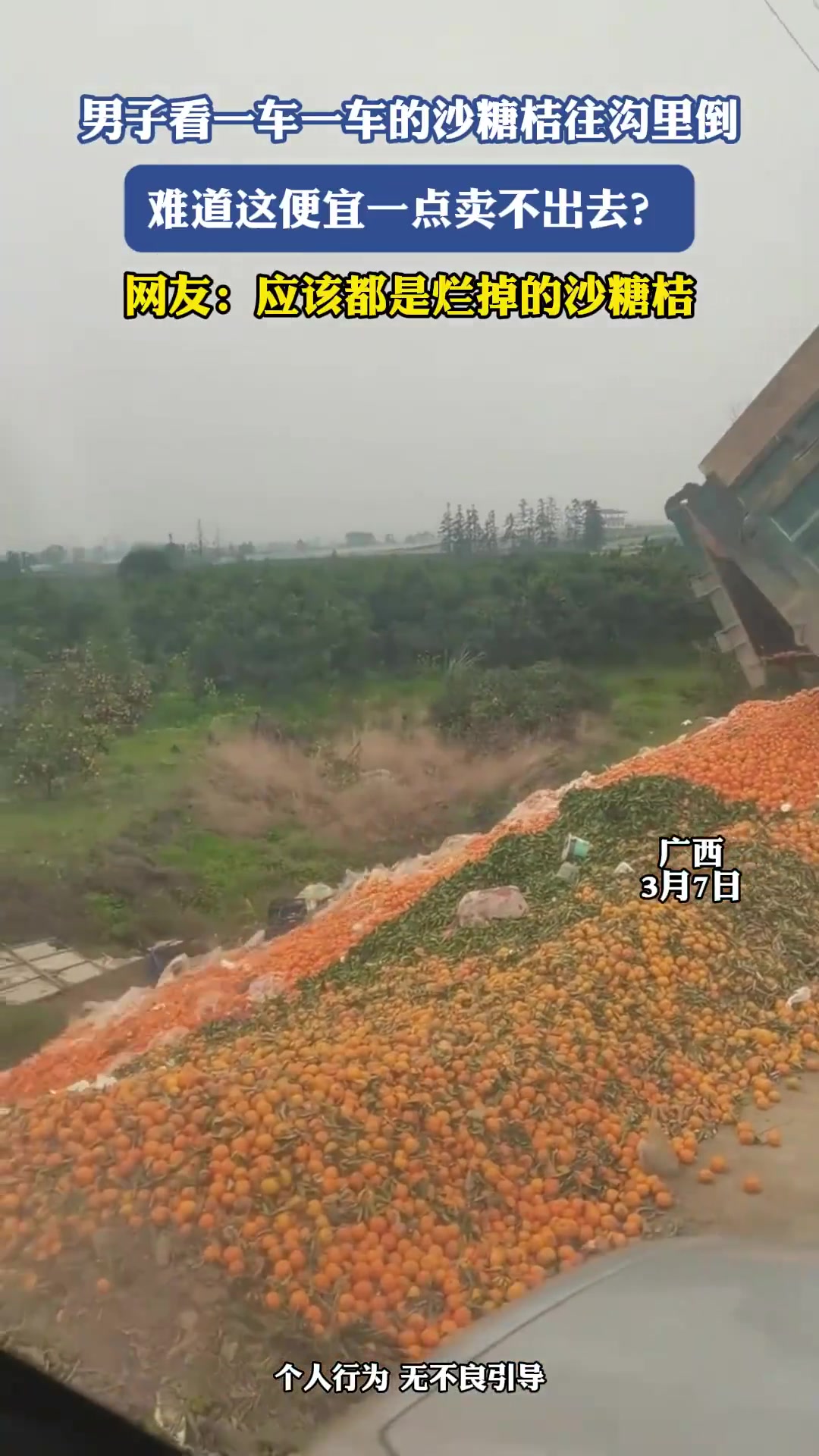 男子看一车一车的沙糖桔往沟里倒,难道这便宜一点卖不出去?