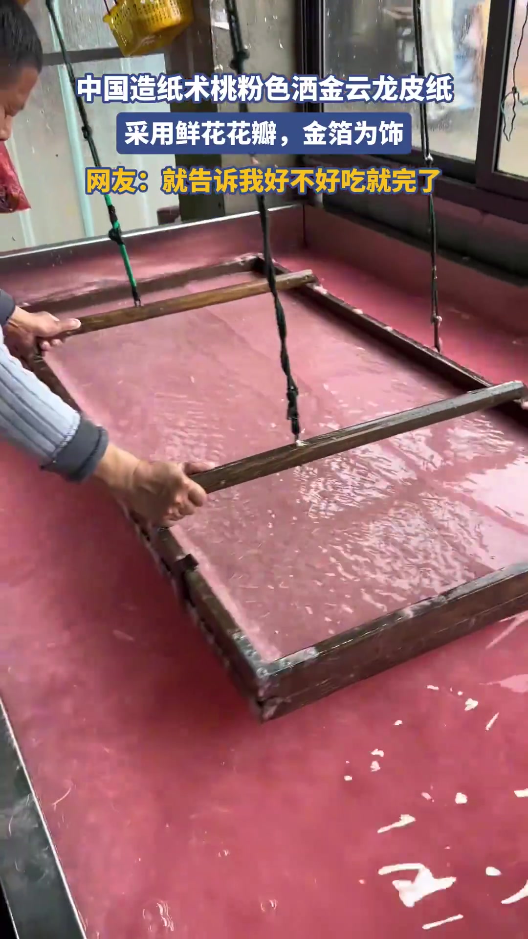中国造纸术桃粉色洒金云龙皮纸,采用鲜花花瓣