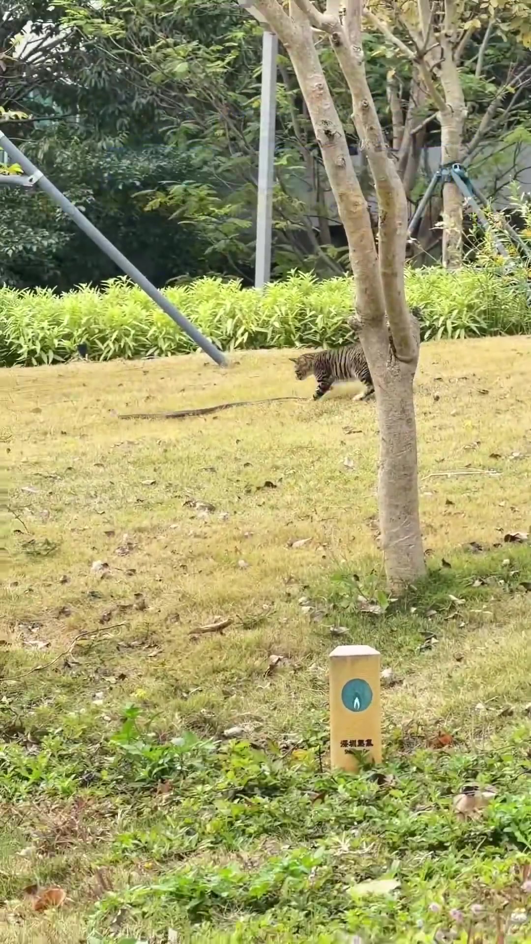 公园上演猫蛇大战,“猫咪 城市的守卫战士“