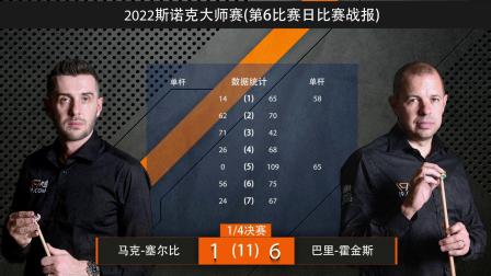 回顾斯诺克大师赛1/4决赛:霍金斯6-1塞尔比