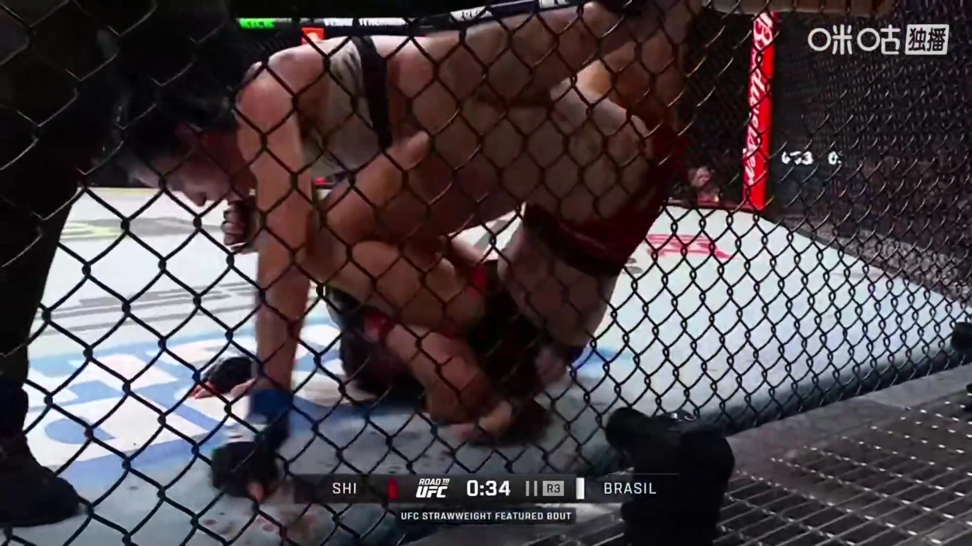>可惜了!格斗女中医石铭倒地挣脱起身,但借力笼网被裁判示意重来