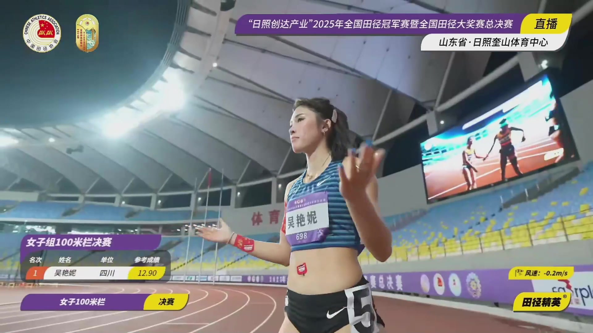 >绝对实力的碾压!吴艳妮12秒90轻松夺冠😋霸气摊手庆祝