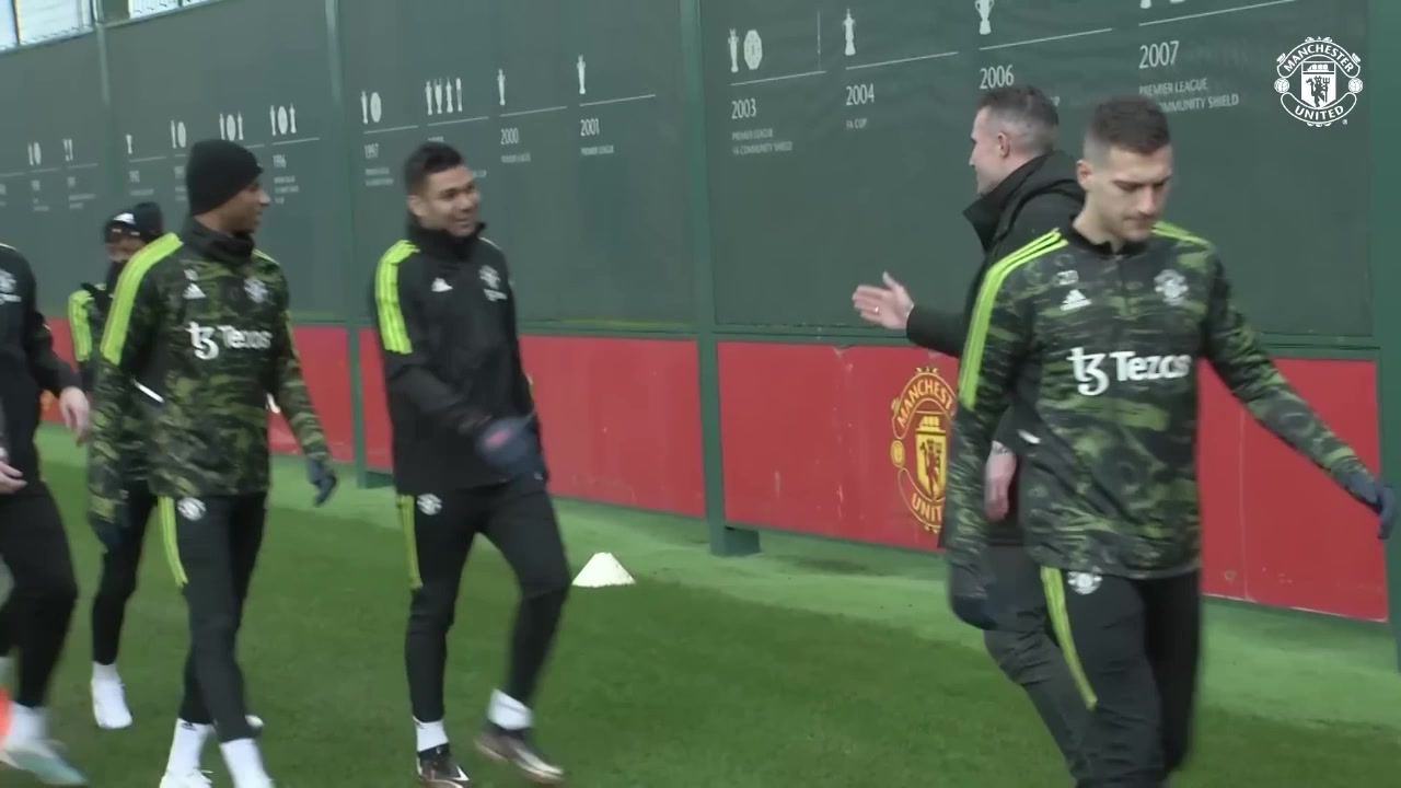 曼联训练前,范佩西与红魔众将握手拥抱致意