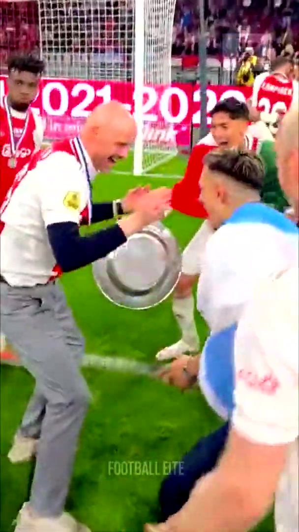 >老江湖了!滕哈赫执教阿贾克斯时期夺冠就曾和利马尬舞💃💃