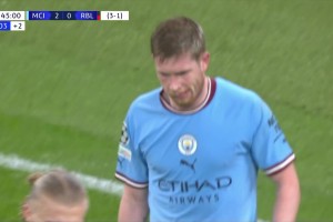 [进球视频] 太快了!德布劳内远射中框 哈兰德头球补射破门两分钟内双响