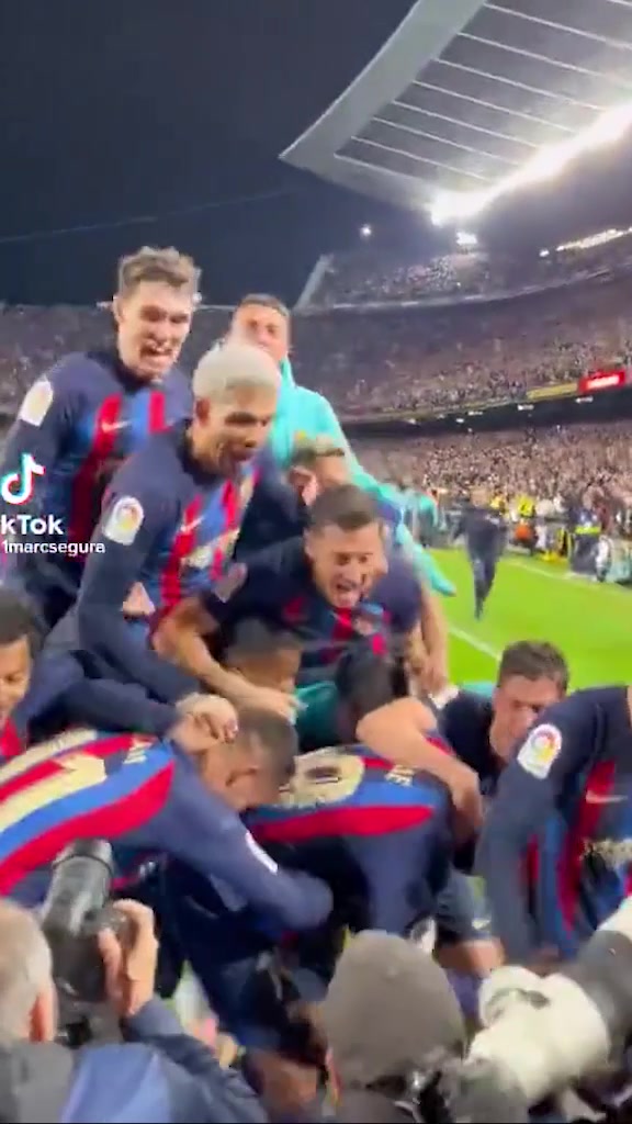 近距离感受巴萨球员绝杀后的疯狂庆祝