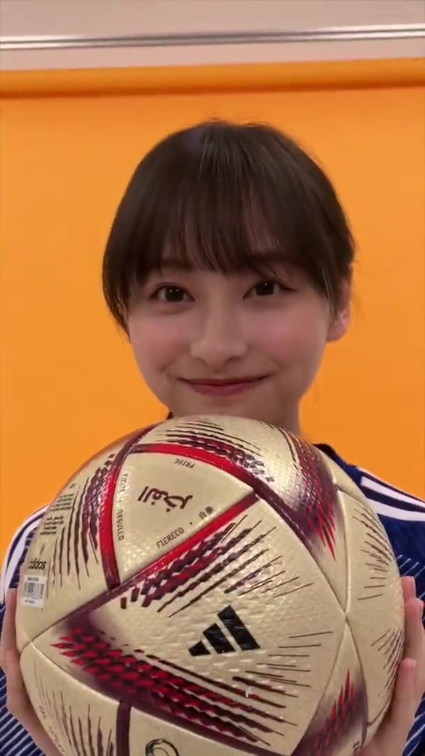 >采访三球王的日本女偶像拿着世界杯用球卖萌🤪