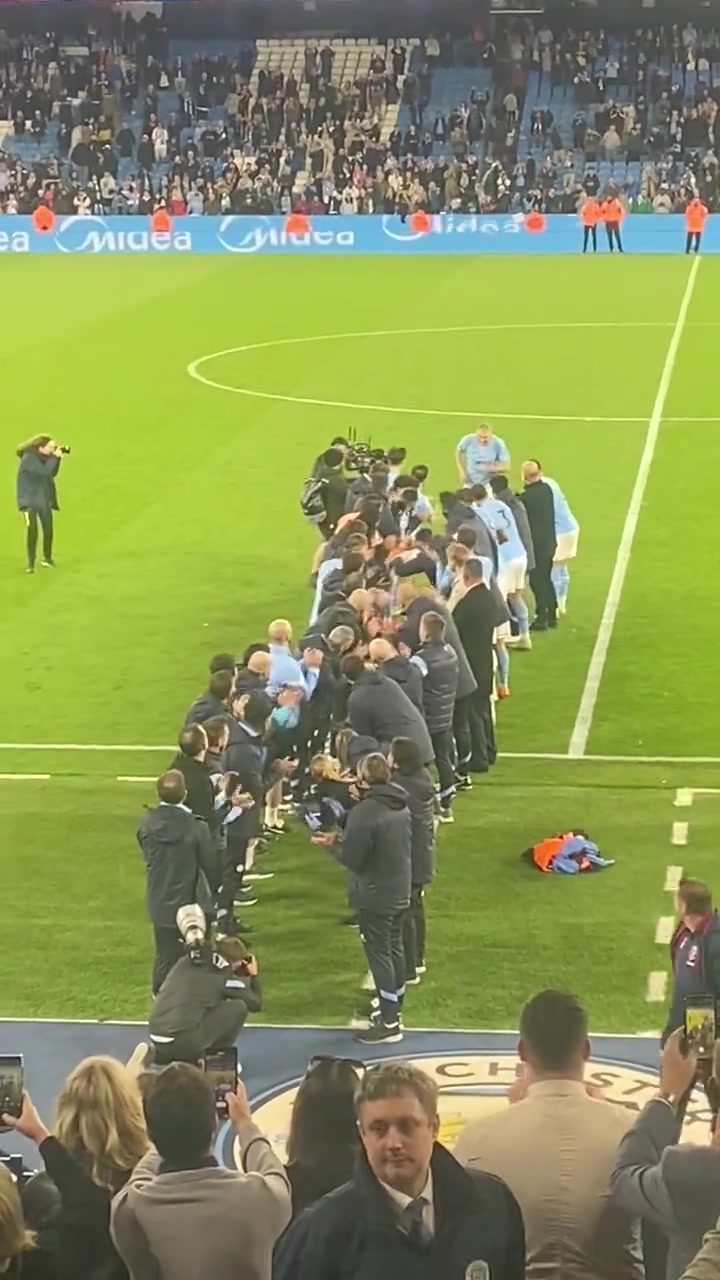 球迷视角看曼城将帅赛后列队致敬哈兰德 哈兰德:给我拍疼了都😂