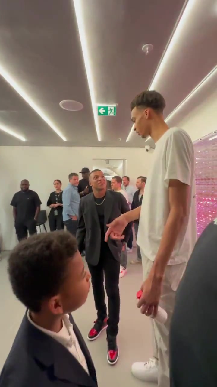 >仰望高山!姆巴佩看2米24的法国篮球运动员时的喜感画面