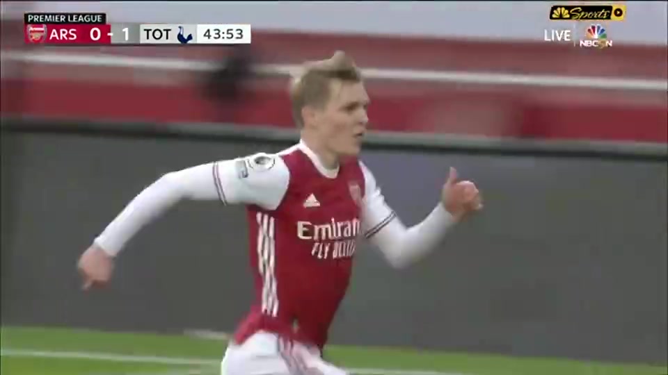 阿森纳队长厄德高在北伦敦德比中收获个人英超首球!