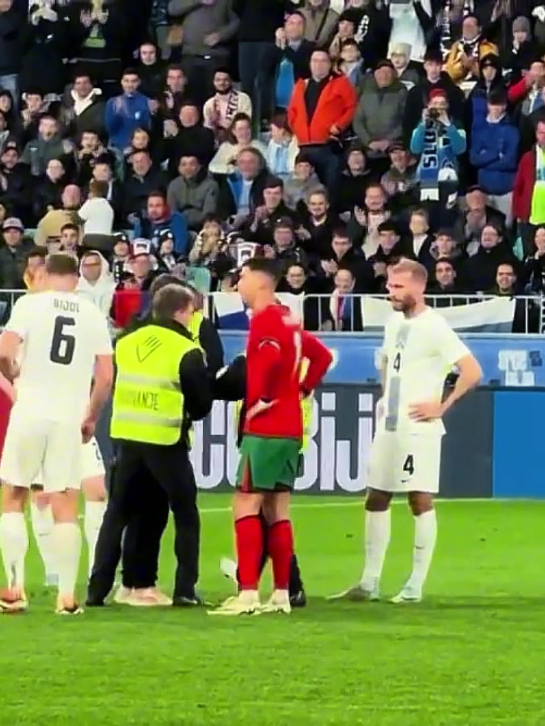 球迷冲进场内找C罗合影,最后无奈被保安带走