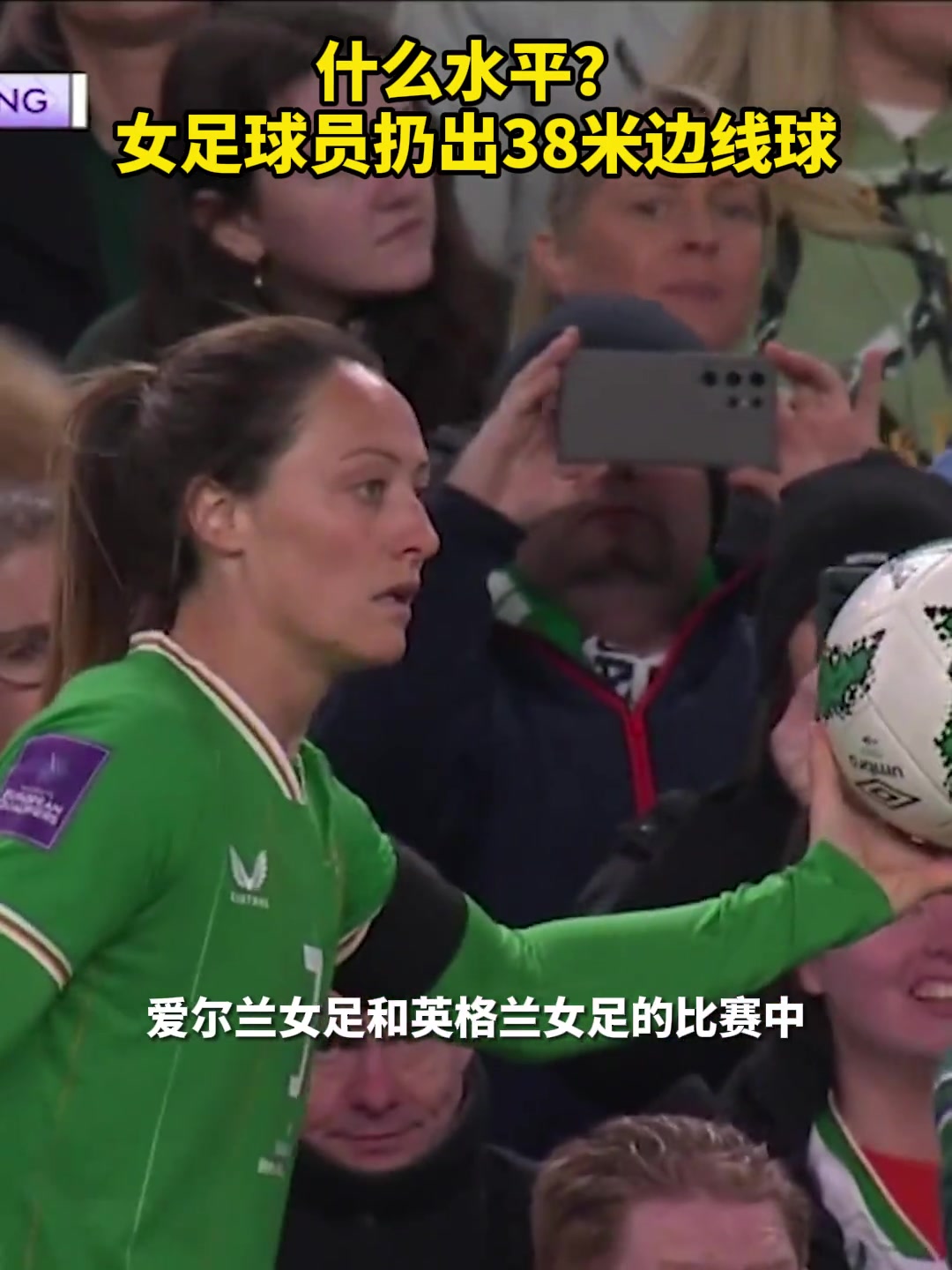 >牛!爱尔兰女足球员扔出38米超远边线球