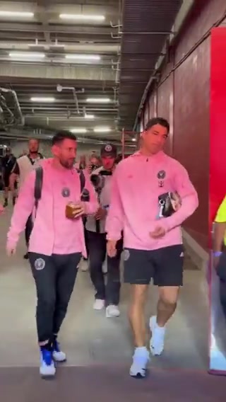 梅西在迈阿密国际队对阵堪萨斯竞技队的球场上,和球迷打招呼