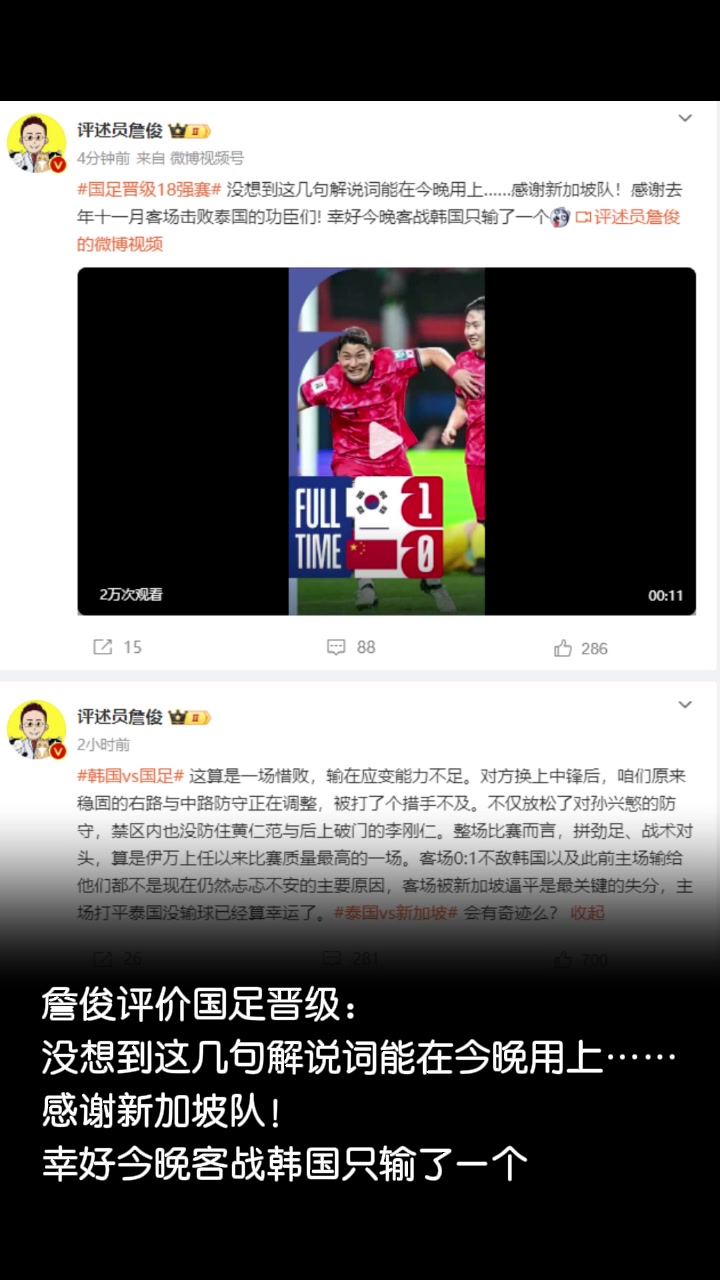 >詹俊点评国足晋级:感谢新加坡队!幸好只输了一个