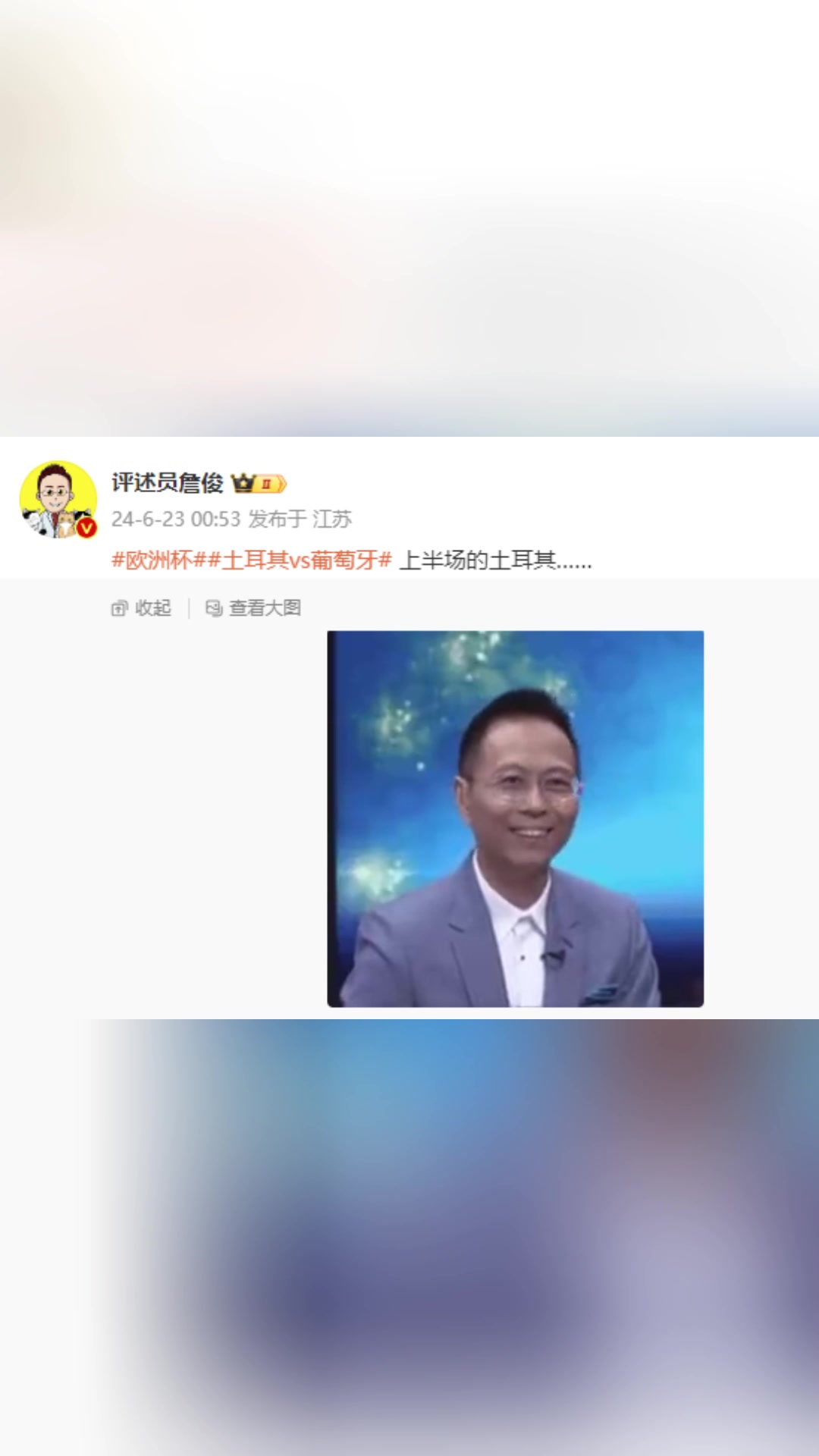 >😅詹俊晒自己表情包:上半场的土耳其...