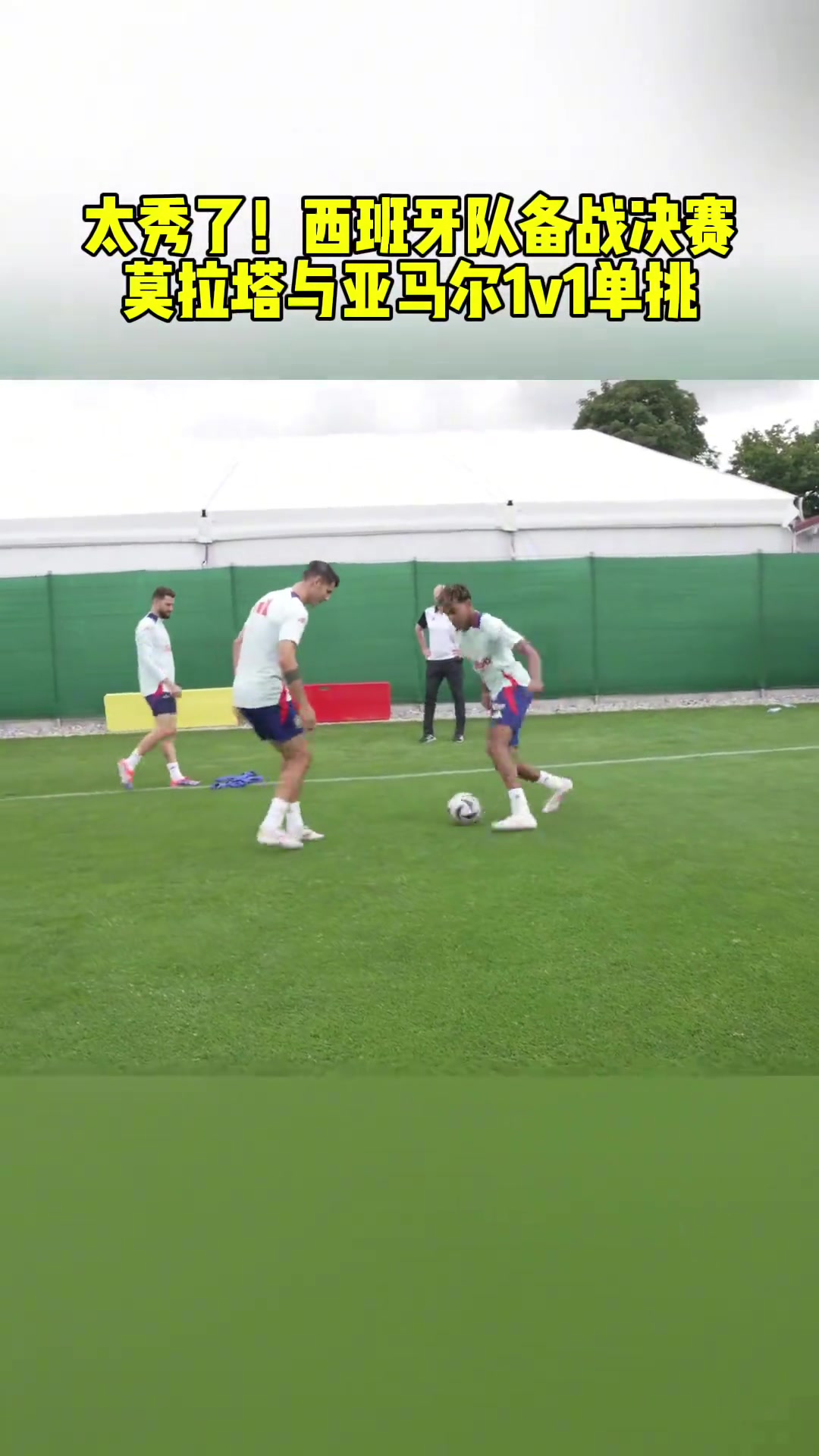 轻松备战!西班牙队内训练,莫拉塔与亚马尔1v1单挑