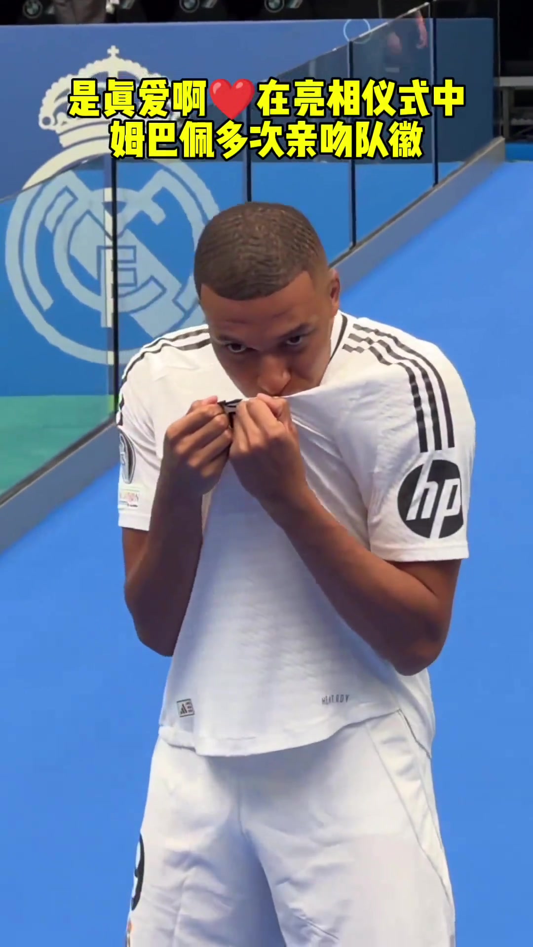 >是真爱啊❤️在亮相仪式中 姆巴佩多次亲吻队徽