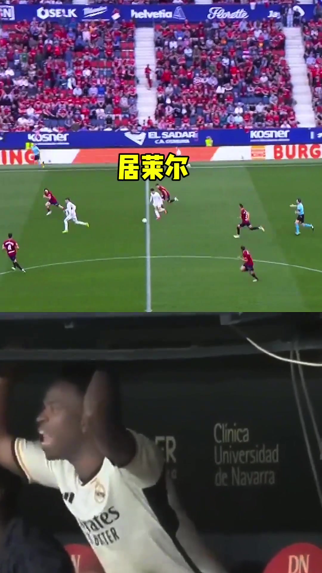 当居莱尔中场超远世界波命中横梁,直接给维尼修斯看呆了