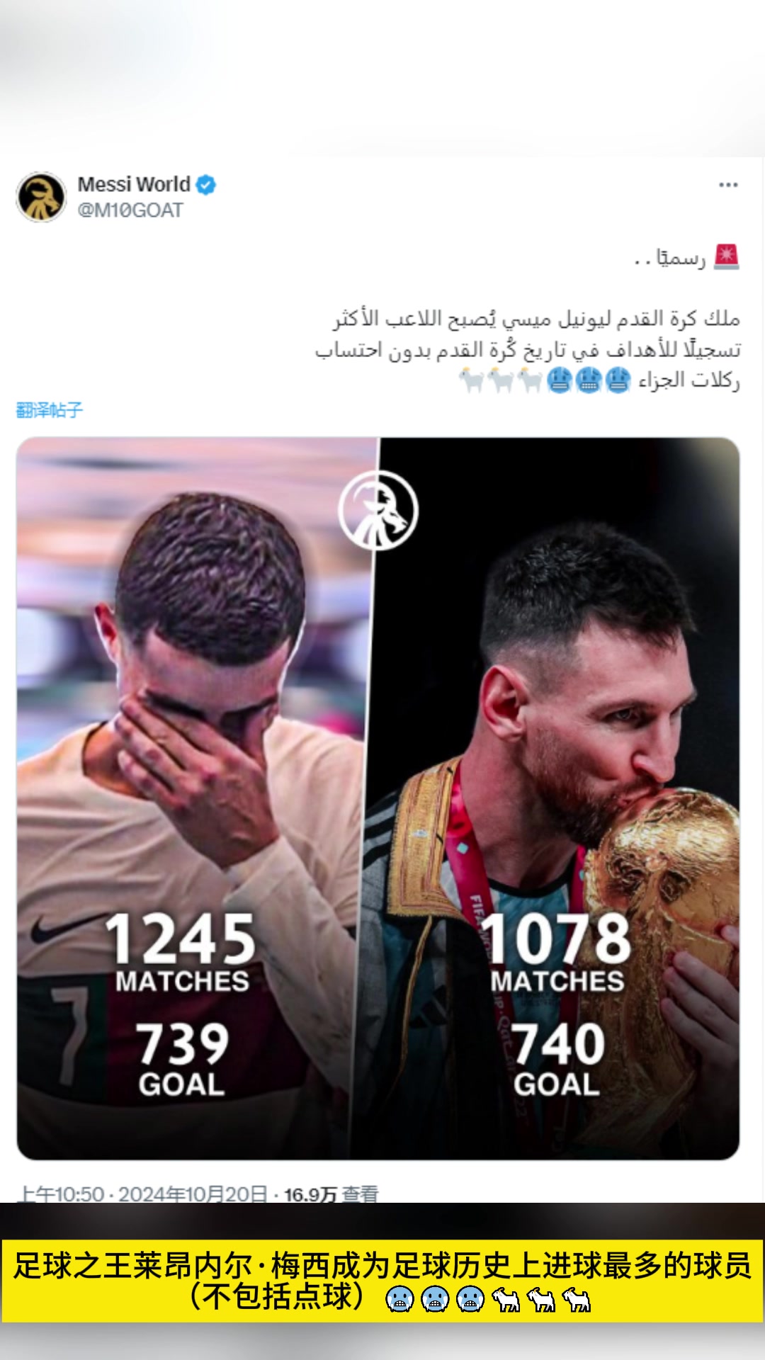 国外梅西球迷博主:足球之王梅西成为足坛史上进球最多的球员🐐