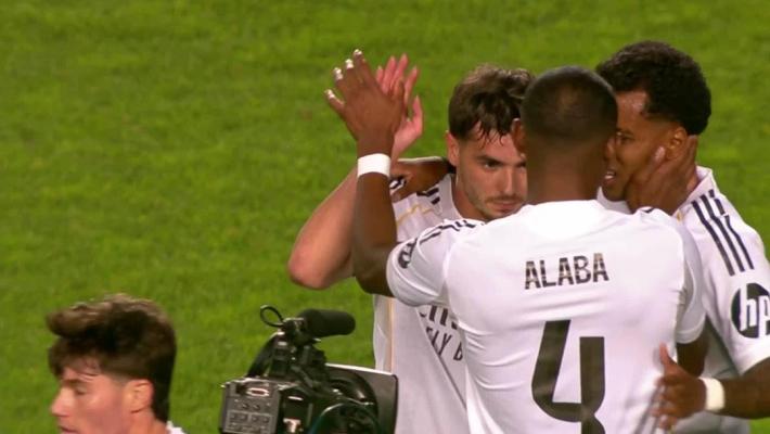[进球视频]皇马补时再入一球!贡萨洛-加西亚分球,迪亚斯低射远角破门