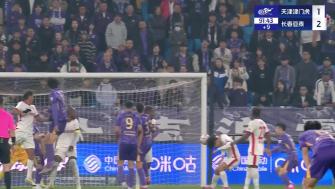 [进球视频]逆天乌龙!贺一然头球顶入自家球门,津门虎扳回一城1-2亚泰