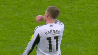 [进球视频]终于进了!吉马良斯倒地铲传,哈维·巴恩斯推射破僵