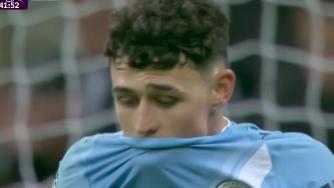 [射门偏出]忘带射门靴?谢尔基横敲中路,福登推射擦柱而出