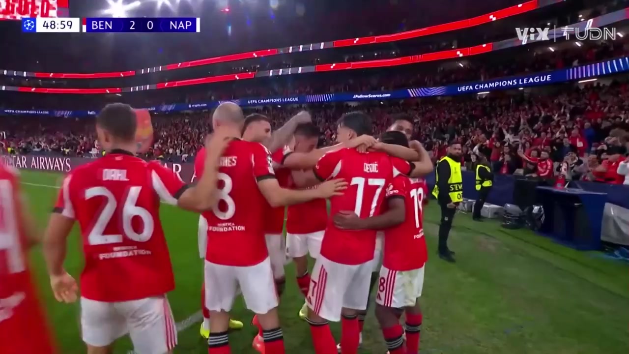 本菲卡2-0领先那不勒斯!里奥斯横传巴列罗巧妙脚后跟破门!