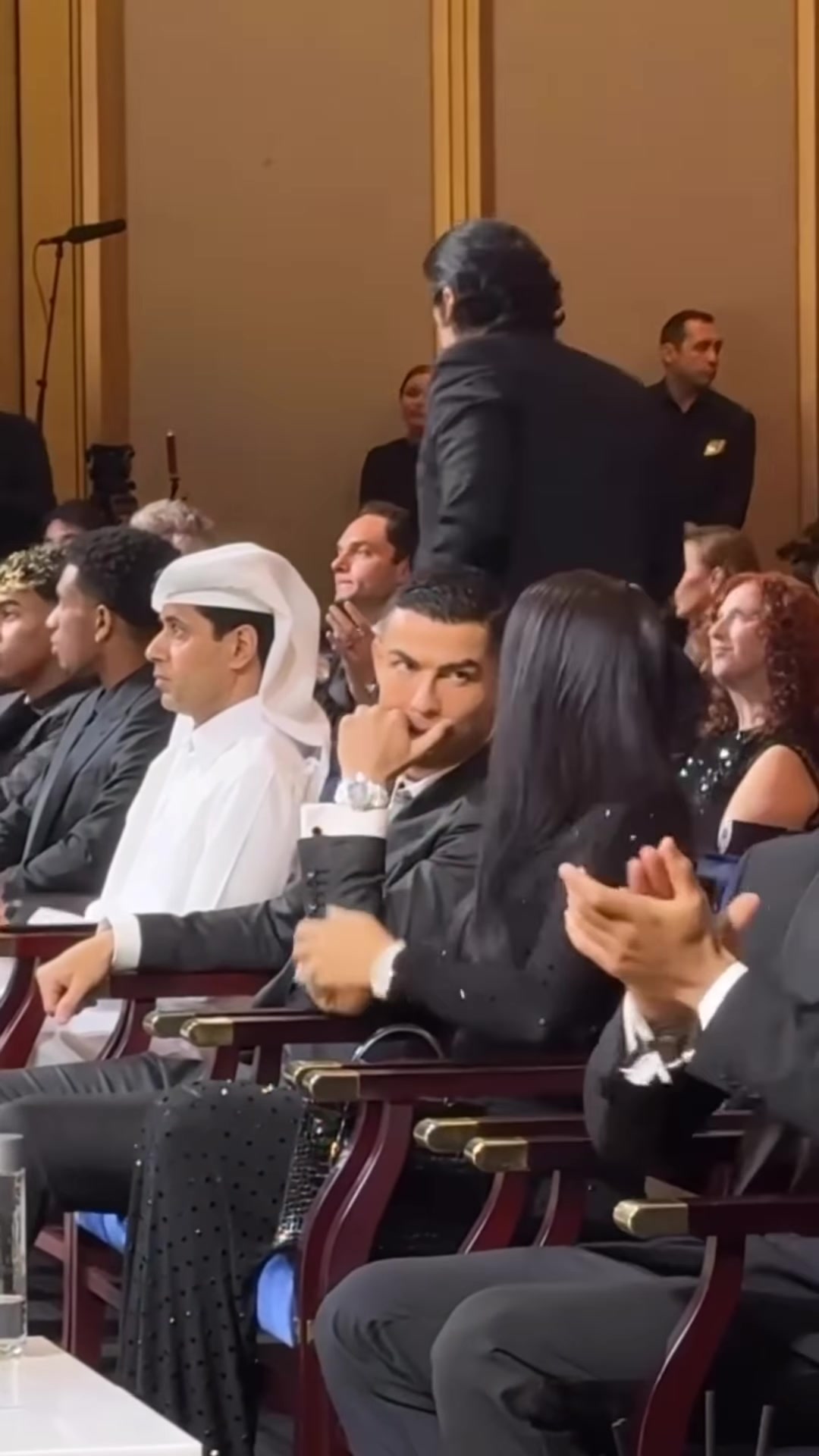 C罗等待领奖时朝着乔治娜抛了媚眼,俩人有说有笑😉
