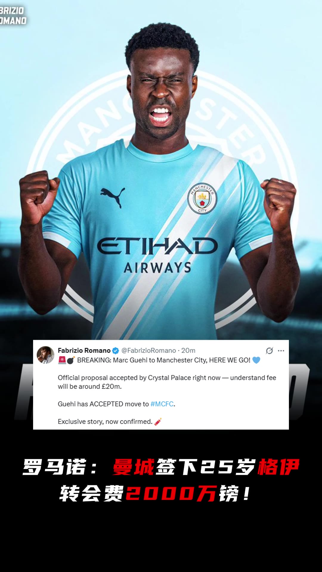 >曾要价4000万如今2000万拿下!罗马诺宣:曼城签下格伊