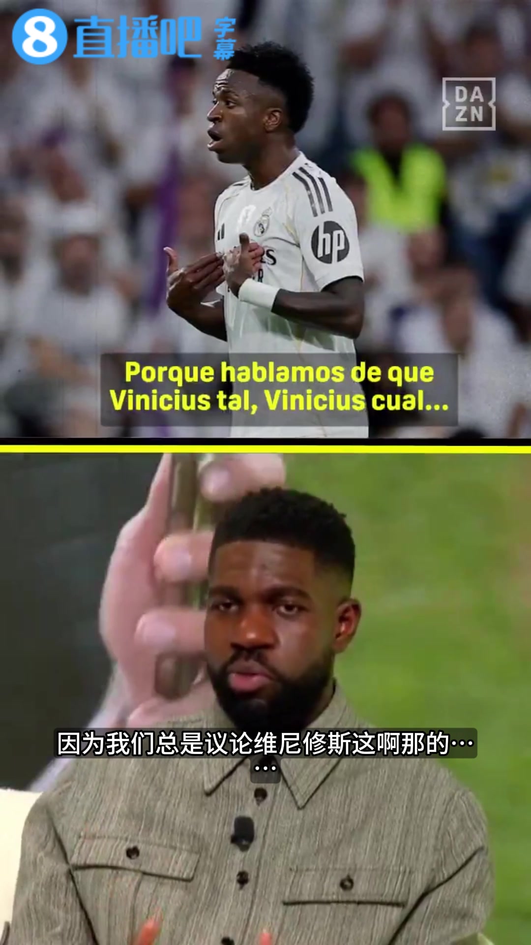 前巴萨后卫乌姆蒂蒂为维尼修斯辩护:如果他状态百分百,他巨强