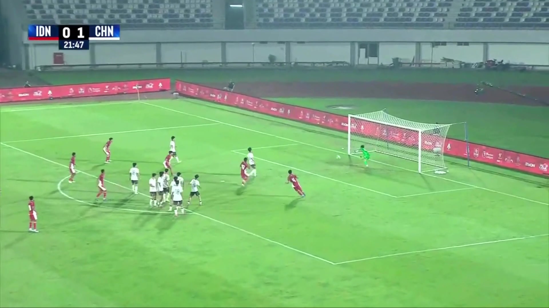 >被进一球!印尼U17任意球攻门,皮球打在防守球员身上折射入网