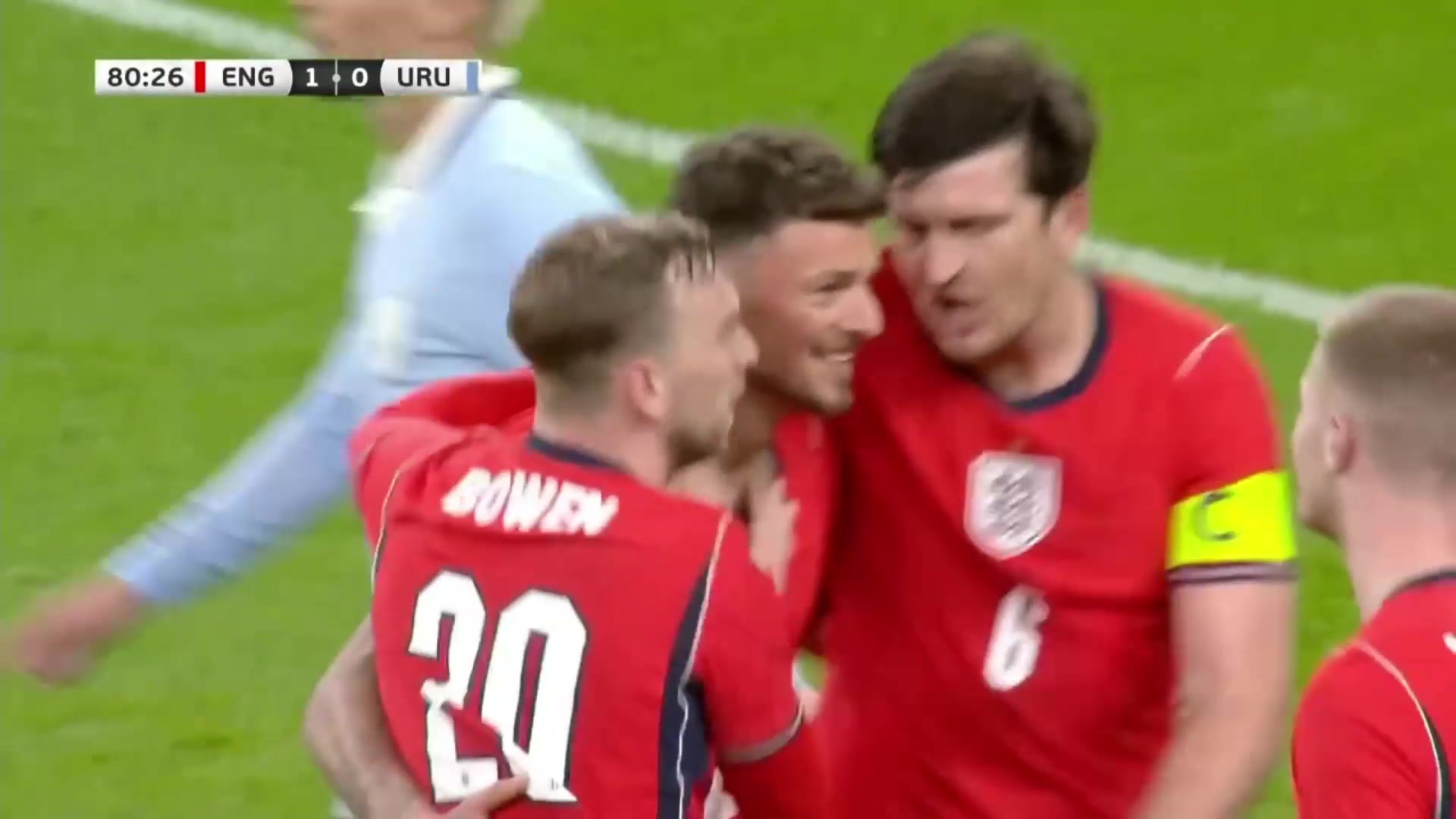 英格兰打破僵局!本-怀特后点补射破门!打入个人英格兰队首球!