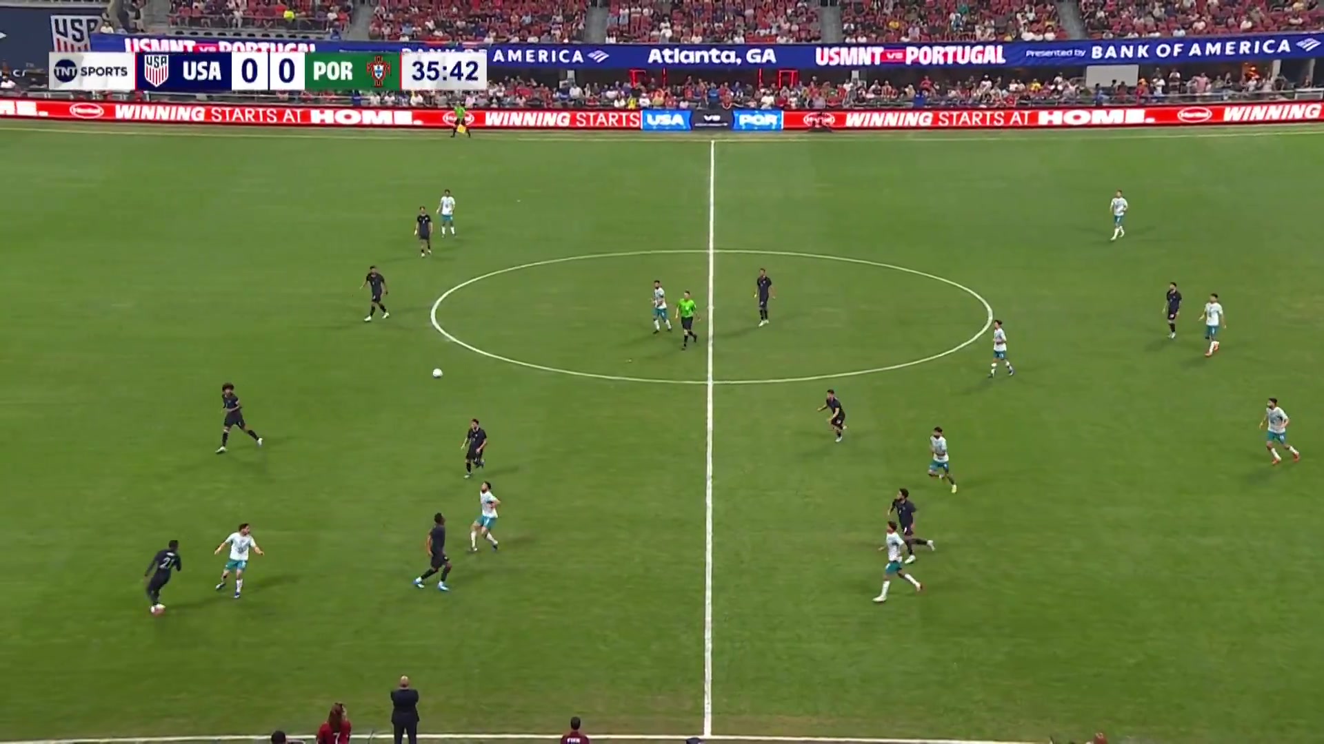 >B费拿球到禁区右路后脚跟回做,特林康停球后推射破门!