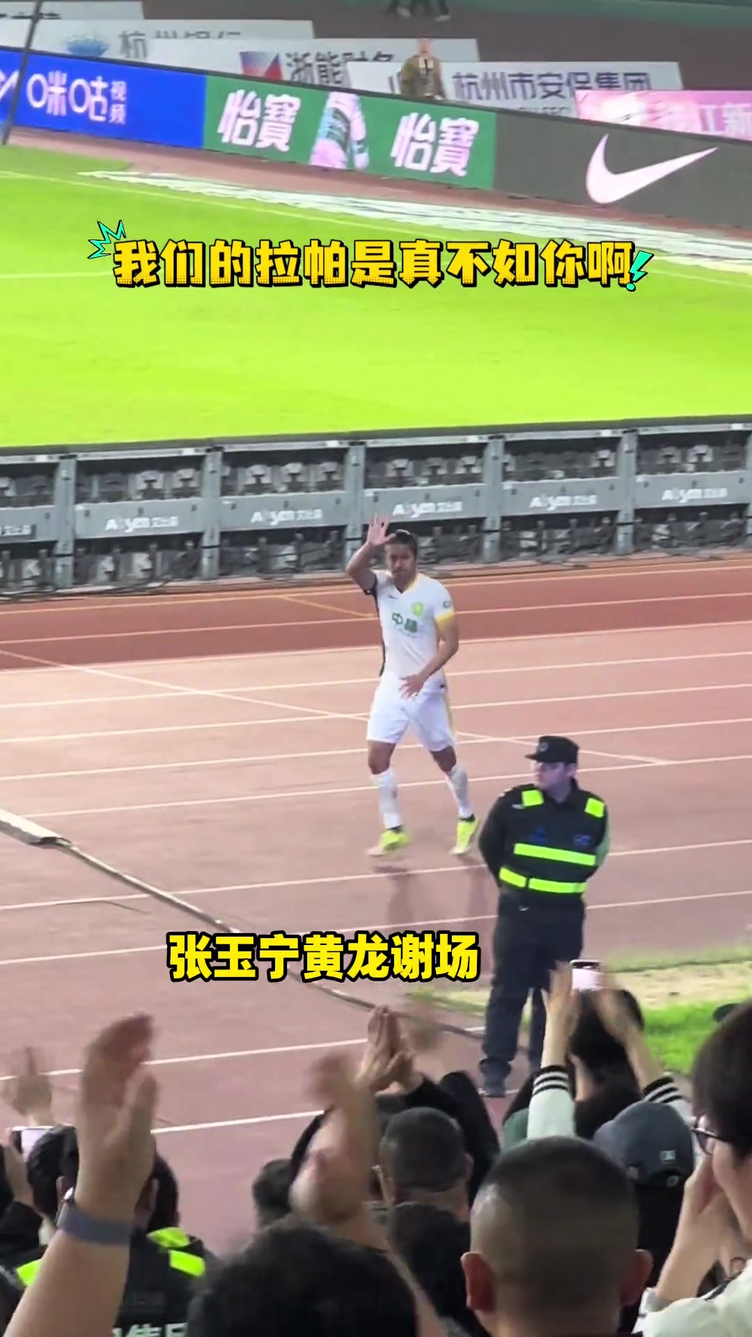 感恩!实拍:张玉宁赛后在黄龙体育场向浙江球迷谢场