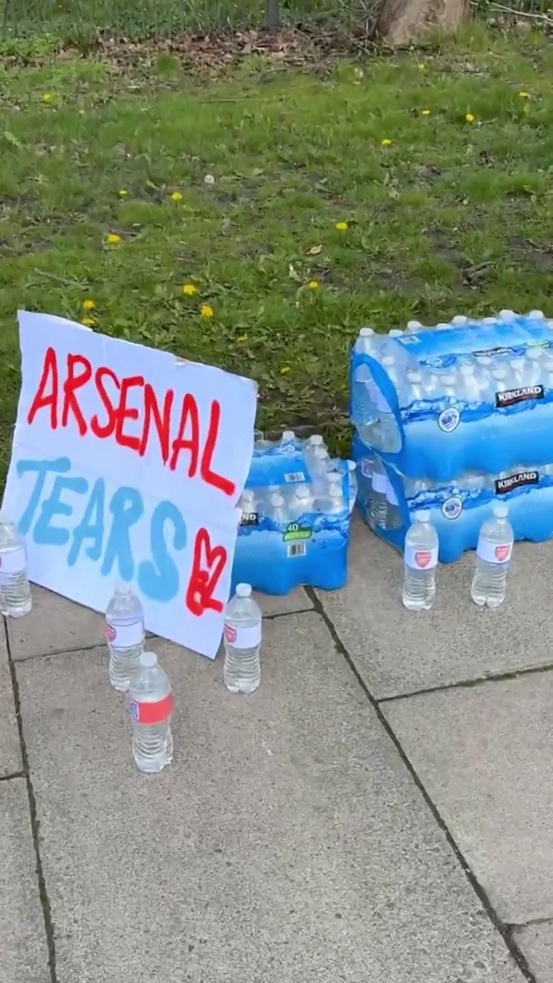 >在伊蒂哈德球场外,印有“阿森纳眼泪”字样的瓶装水正在出售