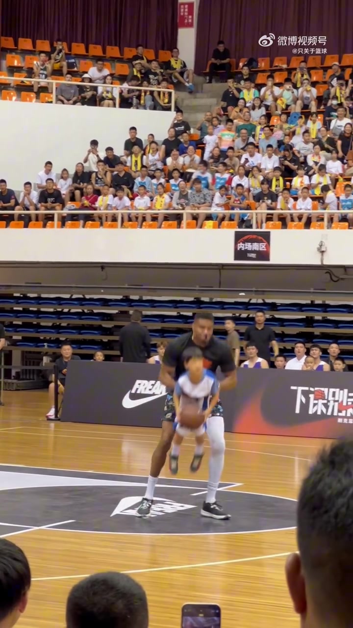>搞笑天赋满分!字母哥和小朋友一起打比赛,直接举着小朋友上篮!