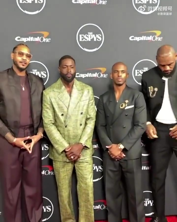 >夕阳红男团?詹姆斯领衔风尘四侠今日ESPY颁奖后一起合照!